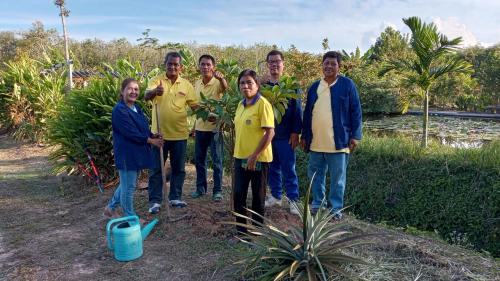 สำนักงานพัฒนาชุมชนอำเภอคลองหอยโข่ง โดยนางอาภรณี อินสมภักษร พัฒนาการอำเภอคลองหอยโข่ง พร้อมด้วย นางจรรยา พรหมเทพ นักวิชาการพัฒนาชุมชนชำนาญการ นำทีมเครือข่ายโคก หนองนา ภาคีเครือข่าย ผู้นำชุมชน อช. ผู้นำ อช. และประชาชนที่สนใจ เข้าร่วมกิจกรรม “จิตอาสา เอามื้อสามัคคี ทำความดีถวายในหลวง” โดย ปลูกต้นรวงผึ้ง ปลูกแก้วมุกดา ปลูกไม้เศรษฐกิจ มอบพันธุ์พืช พันธุ์ผักสวนครัว และสาธิตการทำฮอร์โมนนมสด : วิทยากร นายสยาม หนูเทพ นักวิชาการส่งเสริมการเกษตรชำนาญการ สำนักงานเกษตรอำเภอคลองหอยโข่ง ณ ศูนย์เรียนรู้แปลงโคก หนอง นา บ้านควนกบ หมู่ที่ 7 ตำบลคลองหอยโข่ง อำเภอคลองหอยโข่ง จังหวัดสงขลา